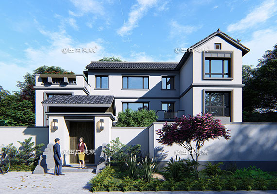 占地面積 134.8㎡ 土建造價 45.0萬 三層中式田園風格別墅